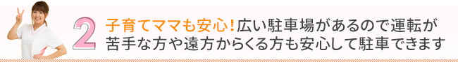 広々とした駐車場が4台ありますので、運転が苦手、遠方から来る方もご安心して来院出来ます。 また、個室もあるので子育てママもご一緒に来院頂けます!