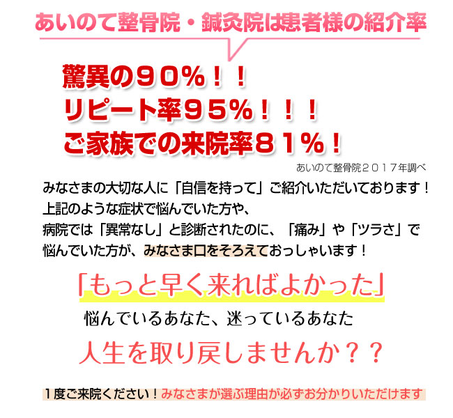 当院では、様々な思考錯誤を繰り返し今の施術法で多くの方から喜びの声をいただいてます。